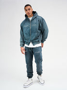 Definition 2.0 Zip Hoodie Petrol Blue Acid Wash